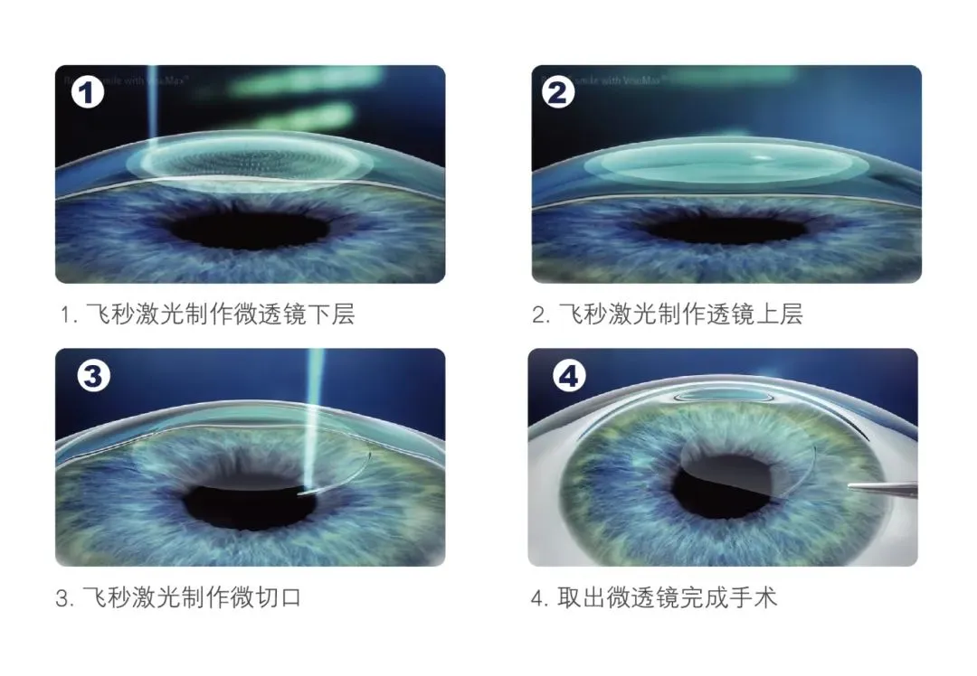 医生熟练地将负压吸引环与飞秒设备相连接,接着细致地调整位置,把吸引环有效对准患者的角膜,完成中心定位工作。待定位有效无误后,患者在医生的耐心指导下,专注地凝视正前方(朝向天花板方向)白环中央的绿点,这关键的 20 秒至关重要!在此期间,需尽量放松,眼睛始终直视前方,避免上下左右转动,更不要眨眼或挤眼,同时保持下巴平稳,切勿抬起。即便绿点消失,也无需刻意寻找。在这 20 秒内,飞秒激光扫描,完成角膜微透镜的制作,并形成一道仅 2 毫米的微切口。飞秒激光扫描结束后,主刀医生迅速拿起手术器械,通过微切口有效地取出角膜微透镜。