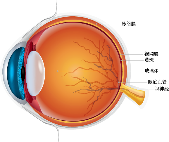 视网膜、血管等组织容易发生老化和病变,年龄相关性黄斑变性等疾病的发病率随年龄递增。