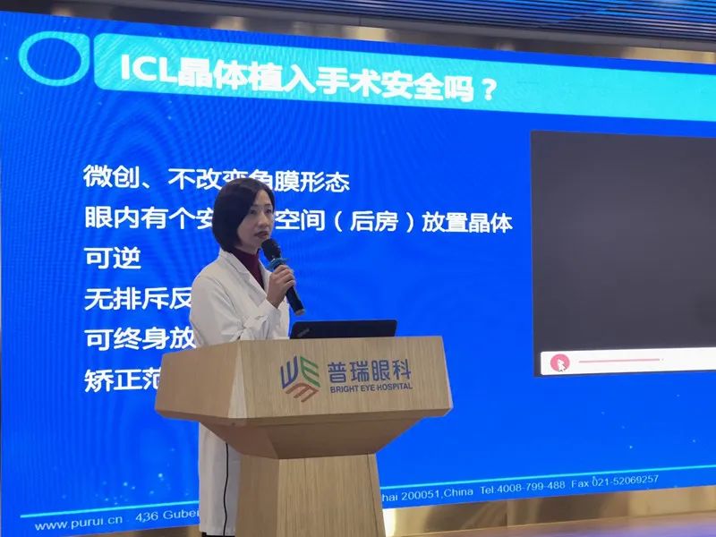 全新的 ICL 技术术式升级 AKICL,让更多的中低度数散光患者拥有了更好的ICL近视矫正服务,可以在不需要特地定制带散晶体的情况下,运用手术设计方式在术中矫正散光,从而让患者费用得到节省,也让部分不适合散光定制晶体的患者获得了更好的术后视觉体验。让在场的患者和家长对近视手术有了更多方面了解。她表示,选择正规的眼科医院和专业的手术医师是手术安心和效果的关键。