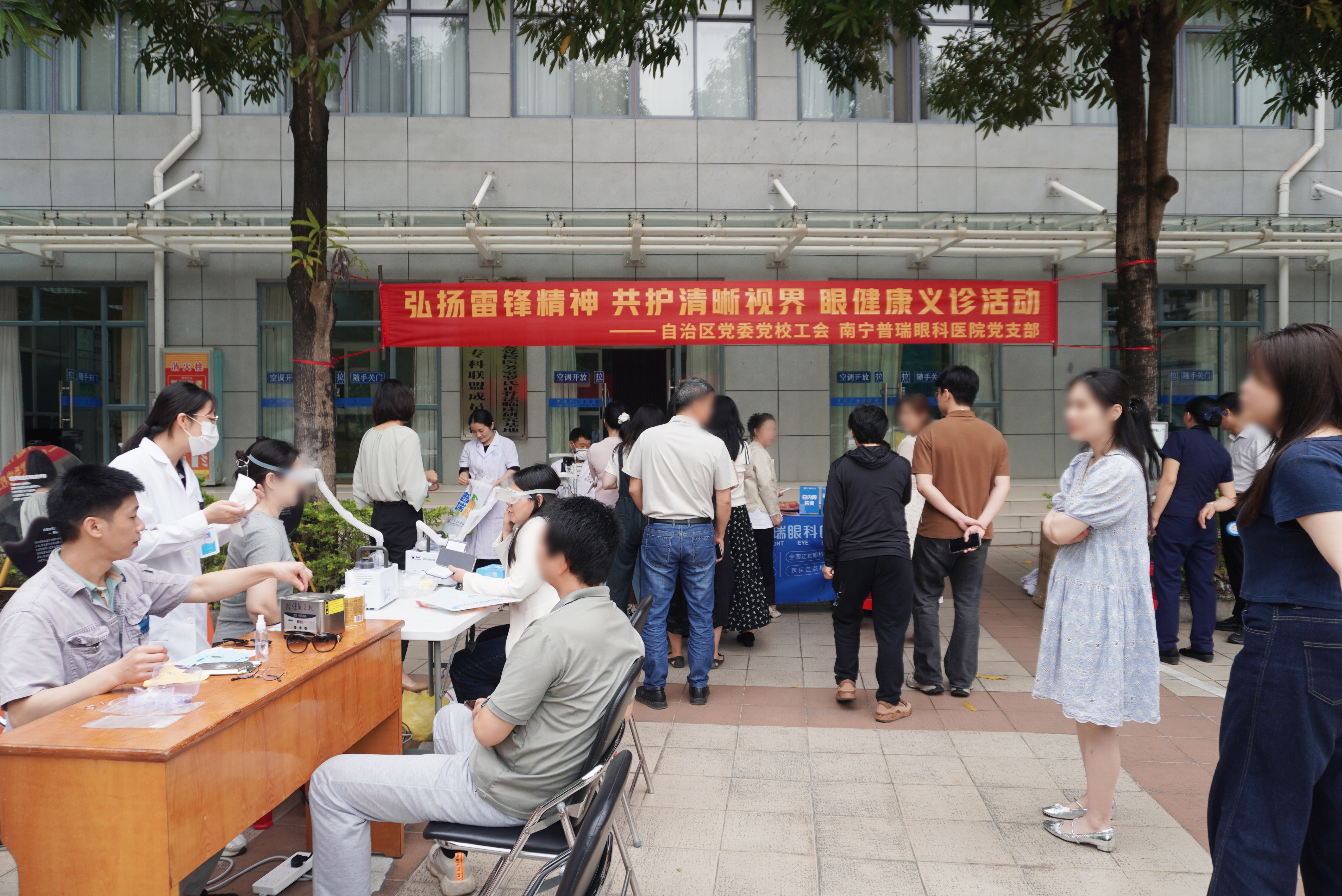 为深入弘扬雷锋精神,践行志愿服务理念,切实守护广大教职工及学员的眼健康,3月27日,南宁普瑞眼科医院党支部联合自治区党委党校工会,在党校总服务台广场开展“弘扬雷锋精神 共护清晰视界”主题义诊活动,将专业的眼科服务送到校园一线。